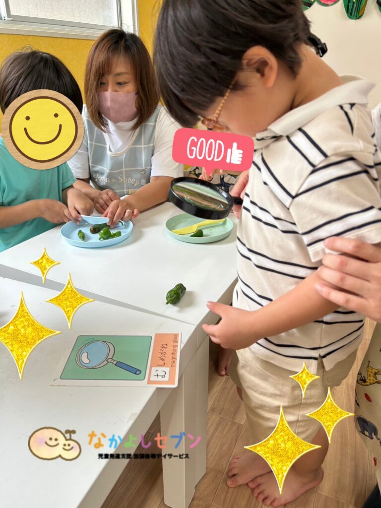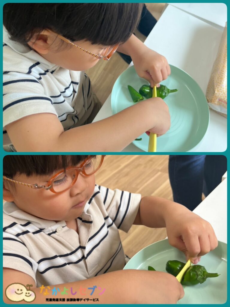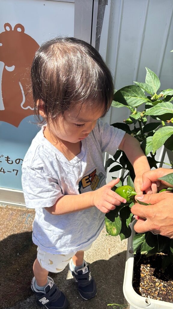 「ぜんぶピーマンのにおいだ」と気付いて先生に一生懸命教えてくれました😊🌿