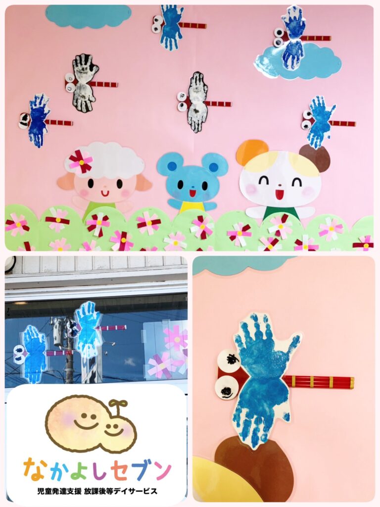 みんなが作った満開のコスモスと可愛いとんぼを見ながら「涼しくさわやかな秋の季節になぁれ~」と先生たちは日々願っています💘(笑)
