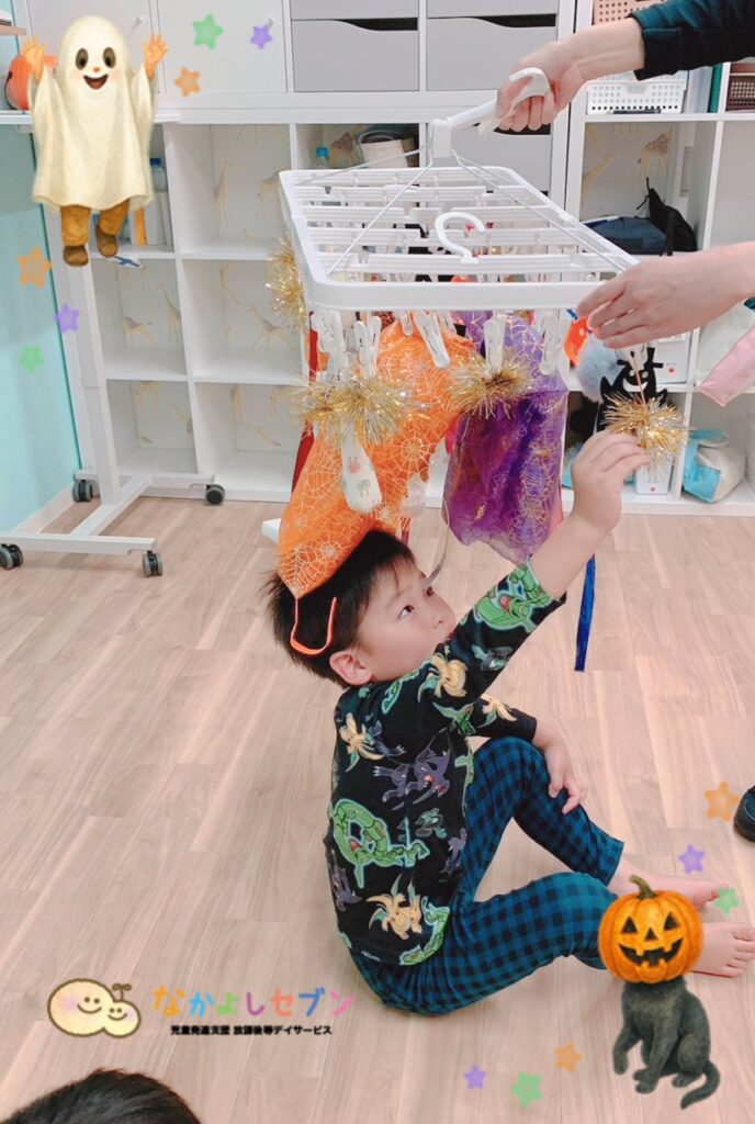 なかよしでは、『身につける衣服』へのこだわりを軽くして、衣替えをポジティブに感じてもらいたい願いから、ハロウィンでは【プチ仮装体験】を行いました🎃